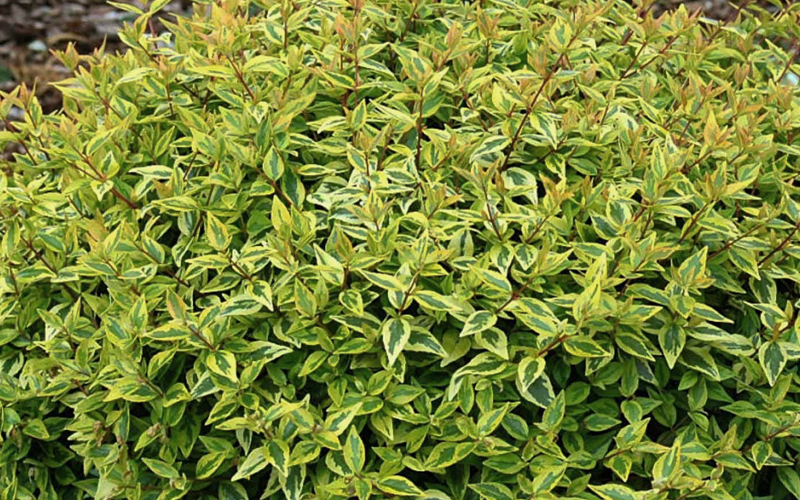 A WILSON BROS INTRODUCTION, Lemon Lime is a dwarf Abelia that sports tricolor leaves of bright yellow, white and dark green, making it a standout in the landscape. An abundance of fragrant, pale lavender to white flowers are produced during summer and into fall. Though the flowers are inconspicuous against the bright foliage, butterflies and hummingbirds will be sure to find them! The lowest growing Abelia in our gardens, Lemon Lime grows in a dense mound to only 2.5 to 3 feet in height with an equal to slightly larger spread. It has demonstrated exceptional resistance to drought, insects, and disease, and deer turn their nose up to it.