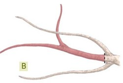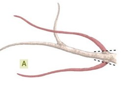 Use what's known as a "selective heading cut" to remove main branches growing between two healthy buds or branches, as shown in illustration B. Cut as close as you can to the base without doing any damage to the buds or other branches.
