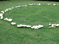 Fairy Rings can grow in most grasses, and are distinguishable by circular rings filled with fast-growing, dark-green grass. Around the perimeter of the ring, the grass will typically turn brown and often times grow mushrooms. Fairy rings typically grow in soils that contain wood debris and/or old decaying tree stumps.Prevention: The best prevention for fairy ring is to aerate the diseased area, water well in the morning hours, remove excess thatch, and follow a fertilization schedule to help increase the amount of nitrogen levels in your lawn.