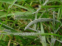 Grease Spot / Pythium BlightGrease Spot, better known as Pythium blight, can effect all grasses in humid climates and can be recognized by the slimy-brown patches that often have a white, cotton-like fungus around it. Grease Spot gets its name for the "greasy" appearance it makes while matting together and can appear in streaks across the lawn.