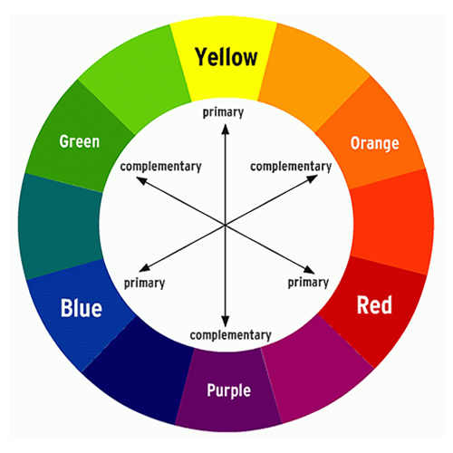 A color wheel is a diagramatic way of showing relationships between colors. Colors on the right side of the wheel are warm. Colors on the left side are cool. Colors adjacent to one another are analogous. Opposite colors are complementary.
