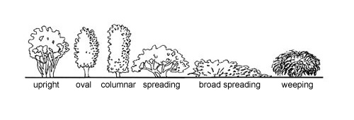Form and line are closely related. Line is considered usually in terms of the outline or bed edges, whereas form is more encompassing. The concept of form is related also to the size of an object or area. Form can be discussed in terms of individual plant growth habits or as the planting arrangement in a landscape. Plant forms include upright, oval, columnar, spreading, broad spreading, weeping, mounding, vase-shape, etc. Form is basically the shape and structure of a plant or mass of plants. Structures also have form and should be considered as such when designing the area around them. Make sure to combine various forms in the landscape design. For example, stagger low growing shrubs with a mounding form in front of taller shrubs or trees with an upright or vase shape.