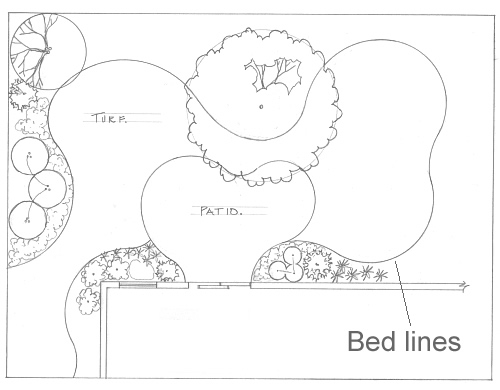 Line is related to eye movement or flow. In the overall landscape, line is inferred by bed arrangement and the way these beds fit or flow together. Straight lines tend to be forceful, structural and stable and direct the observer's eye to a point faster than curved lines. Curved or free-flowing lines are sometimes described as smooth, graceful or gentle and create a relaxing, progressive, moving and natural feeling. Bed lines often flow across hard-surfaced areas such as driveways and walkways.
