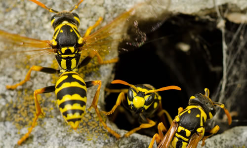 Yellowjackets are a potentially very dangerous wasp encountered around homes and buildings. While most people suffer only temporary pain from yellow jacket stings, they can be life-threatening to persons who are allergic to the venom. People who develop hives, difficulty breathing or swallowing, wheezing or similar symptoms of allergic reaction should seek medical attention immediately. Itching, pain and localized swelling can be somewhat reduced with antihistamines and a cold compress.