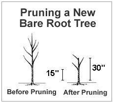 If you have purchased bare root trees follow the instruction below for initial pruning at time of planting:
