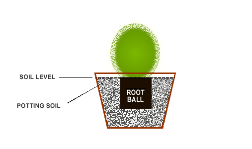 Pour a small amount of your soil mixture in the bottom of the container. Set your plant in the container and make necessary adjustments by adding or removing some soil so that the top edge of the root ball will sit approximately 1" below the rim of the container.
